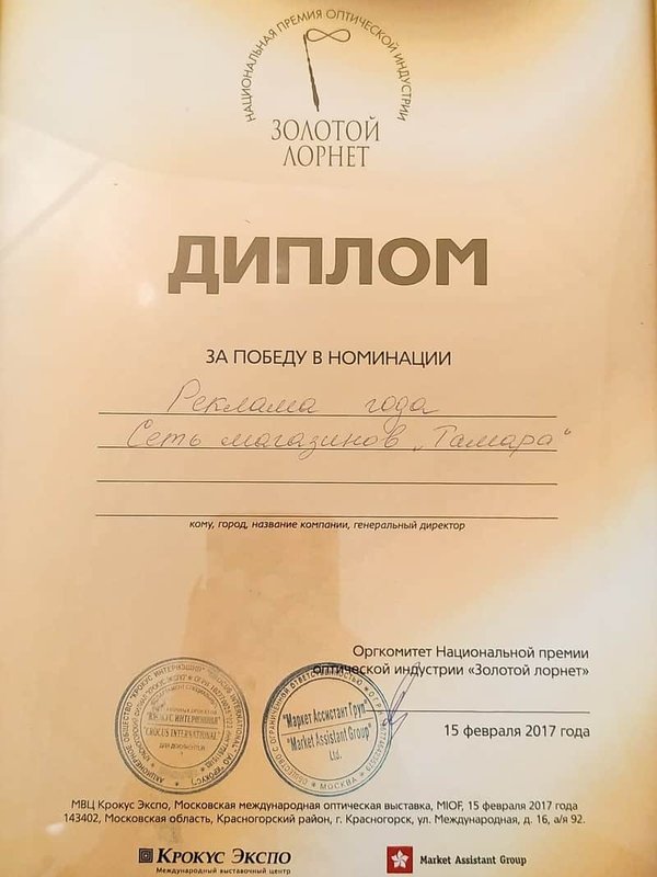 Оптического салона Тамара